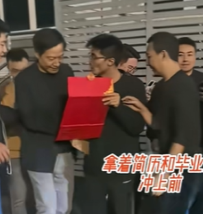 围观的人也凌乱了!可雷军却始终保持微笑,全程都在听小伙介绍自己,雷军的助手顺势接过了小伙的文件袋,那里面肯定是小伙的个人简历,看样子,小伙这把赌对了!