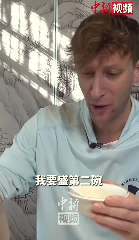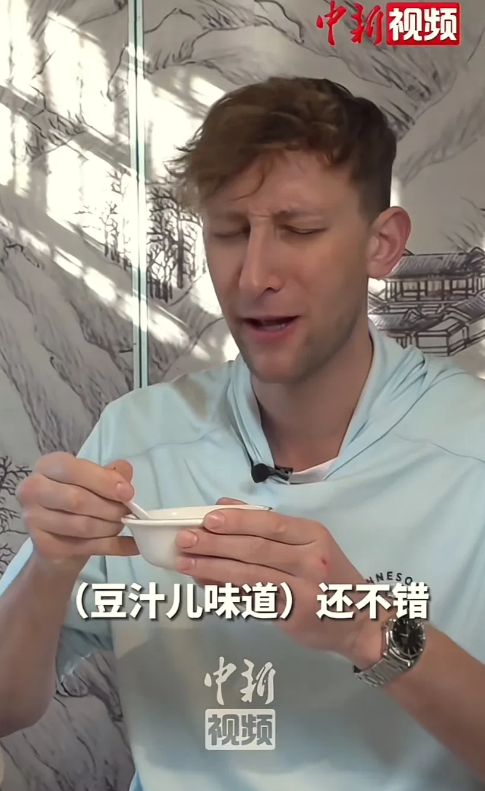 埃文还是去喝豆汁了! 都说豆汁会惩罚每一个嘴硬的人。 那种酸酸的、馊馊的味道,大部分人会yue。 他居然还是要亲自去试试。 没想到他喝完第一口,说:还不错。 没想到他又添了一碗,炫完了。 没想到他还来第三碗,吃完说:好吃。 这口味真是海纳百川啊! 能喝的惯豆汁的人屈指可数吧?