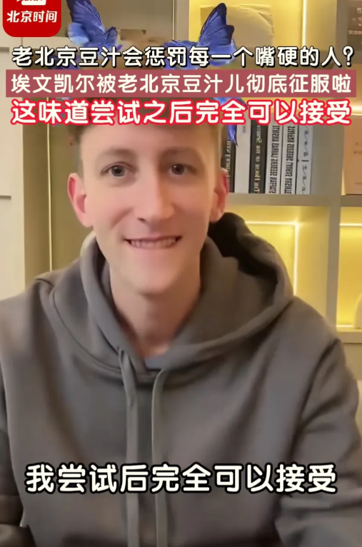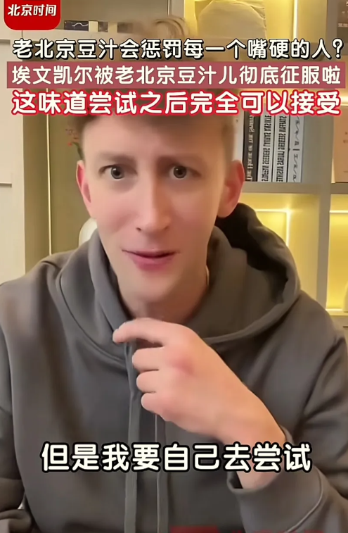 埃文凯尔真的去喝豆汁了!有三个意想不到:第一、直播间很多粉丝告诉他,一定不要去喝豆汁,豆汁会惩罚每个嘴硬的人,当然也有粉丝逗他一定要试试,不喝豆汁就当没到过北京,没想到他居然真的去尝试。 他说,喜不喜欢我得通过自己尝试才知道,所以我要去试试。 真是个好奇宝宝。