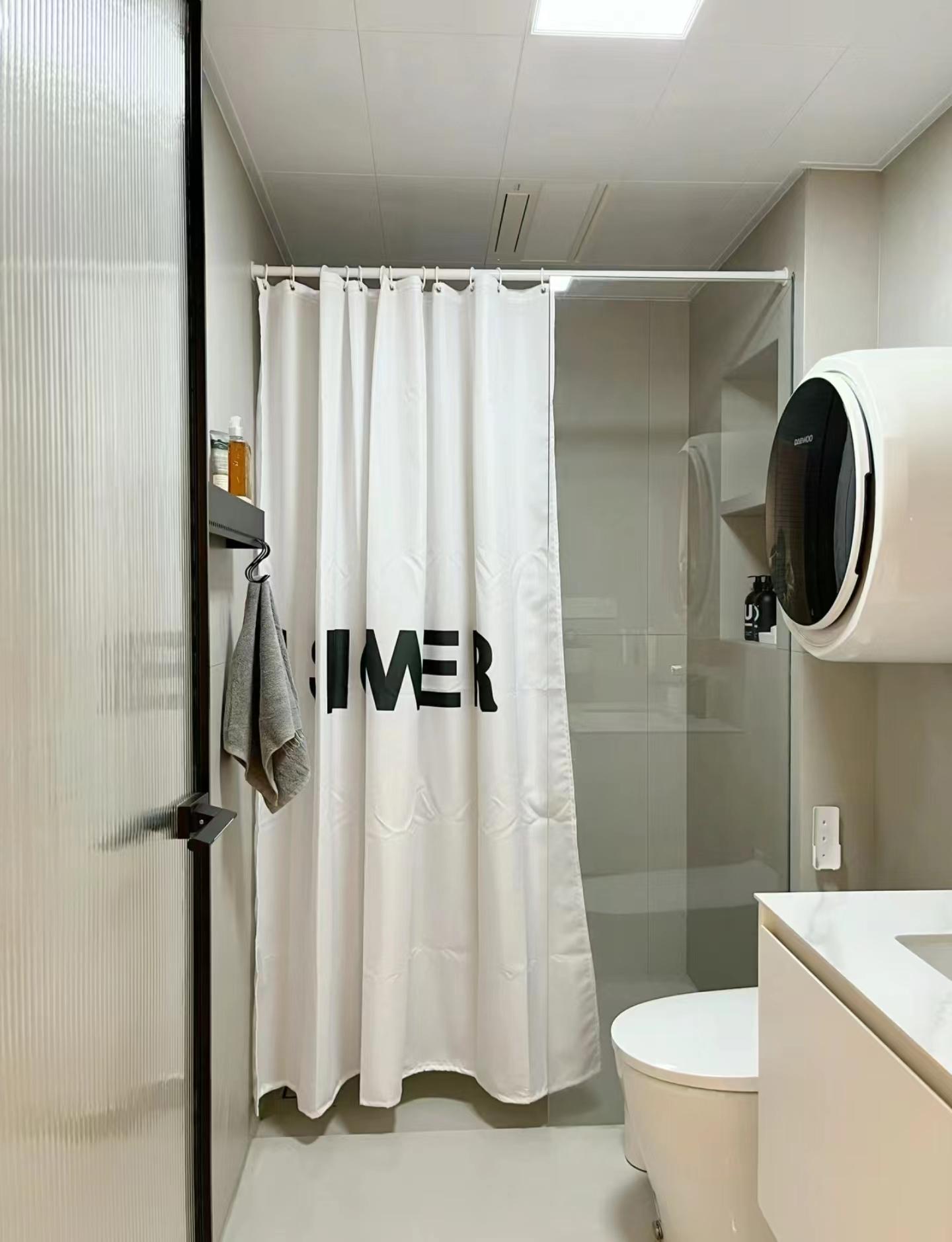 洗澡时,浴帘拉起,保障私密性;洗浴完毕,轻轻拉开,浴室即刻恢复宽敞明亮,不占一寸多余空间。