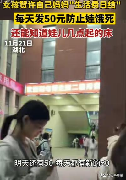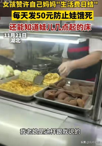这个家长太逗了!湖北,一家长给女儿的生活费居然是“日结”,每天发五十元最大的好处是防止娃饿死,还能知道娃几点起的床。网友:这么做也有弊端,大学生应该学会理财,哪怕是生活费! 11月21日,湖北一大学生小李(化名)自从上大学以来,从来没有和母亲断联过,因为财政大权掌握在母亲的手里。 别的同学的家长基本都是一个月发一次生活费,但她的母亲却与众不同,平常一天发一次生活费,根据小李平常的花销水平,一天给她五十块,保证她一日三餐都能够吃好吃饱。 因此每天早上第一件事情就是瞅准小李睡醒上课时间发钱,小李对此也表示赞成的态度,每天都能够收到五十块钱还挺幸福的。 对此有网友表示这种奇葩的方式确实有个好处,能够每天都知道孩子是活着的,不至于乱花钱,更不至于饿死,还能够知道孩子几点起床,母女之间也能每天交流。 后来小李十分自豪的把母亲的这个发生活费的方式放在网上称赞,有不少网友表示赞成,但也有不少网友反对这个做法,在反对的网友看来,大学生活正式锻炼孩子独立自主能力的时候,无论是生活自理,还是花钱理财方面,都应该给他们自己决定调理的机会,以免到了社会上踩坑。 有网友就分享了同学的经历,家长直接给了大学四年的生活费,十万块钱,让他自己管理这个费用,毕业以后有多余的也是算是他自己省的,这样就能够锻炼他规划钱的能力。 你支持哪两种方式呢?
