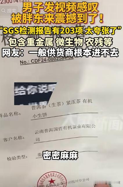 又被胖东来震惊到了!男子在胖东来买了一堆茶叶,打开以后发现了一个惊奇的东西,厂家提供了SGS检测报告有203项,包含重金属、微生物、农残等,网友:竟然是SGS检测,非常权威,一般供货商根本进不去! 在如今社会里,商家鱼龙混杂,有好商家,但也不乏充斥着一些不法商家为追求利益,在食品上弄虚作假。 相比之下,河南胖东来严格管控食品安全的举动真的备受大家赞赏,毕竟买东西主打一个放心安全,尤其是大家的生活用品,如果不能够保证食品,商品健康,这和在外购买的无良商家又有何区别,大家又如何心安呢。 因此也难怪胖东来超市里面的东西经常一扫而空,尤其是在报道那家商品塌房的时候,胖东来就会莫名其妙的迎来一波热潮,不光是本地人进去疯抢,就连外地人也不远万里的来到许昌进行大采购。 前段时间是卫生巾,如今又是无添加剂的酱油,只因他值得信赖,价格实惠且安全,不到一上午即被卖断货。 不禁会有人好奇,不至于这么夸张吧,但直到看见这个男子发布的被胖东来震撼到的视频,才真正明白,难怪胖东来的东西爆火。 仅仅是个茶叶,里面就提供厂家检测报告,能够清晰看见原材料是否安全健康无污染,光是这个报告,上面就有二百多项检测结果,很难让人不爱,最关键的还是SGS检测报告,非常有权威性。 来源:大象新闻