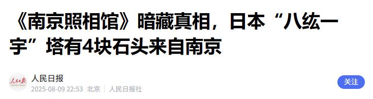 人民日报 2025-08-09——《南京照相馆》暗藏真相,日本“八纮一宇”塔有4块石头来自南京