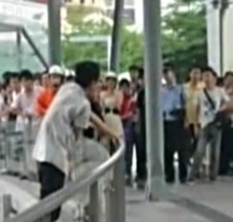 路人担心刺激到小伙,他带着大家一边往后退一边说道:“好好好,我们这就离你远点...”