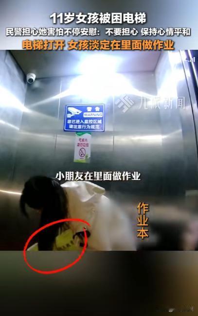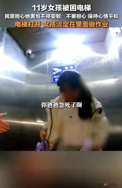 心理素质无敌了!黄石,一11岁小女孩坐电梯回家,结果电梯事故被困在里面,所有人都以为小女孩一个人会无比惊慌失措,不停的安慰她不要担心,谁料打开电梯一看,女孩竟然淡定的在里面写作业。网友:“对一个孩子来说,有什么比作业更可怕的。” 11月18日,11岁小女孩小米(化名)这天放学回家,本想着赶紧回家写作业,结果在坐电梯的时候出了差错,电梯偏偏发生了故障,小米被困在里面出不来,还好外面有邻居目睹了这一切,看的他们特别紧张,毕竟是小女孩一个人在里面,肯定特别无助和害怕。 他们赶紧拨打了报警电话,警察来了以后,从邻居口中得知情况,也害怕小女孩会情绪激动,便在外面不停的安慰女孩,告诉她不用害怕,也不用担心,一定要保持心情平和:“没事没事,一会就出来了!” 周围邻居还表示,我看着都吓人,没过多久在民警的努力下打开了电梯门,结果小女孩的举动让人看呆了,她竟然十分淡定的在写作业,丝毫不慌,和前面大人担心的画面形成了鲜明的对比。 网友:“也是,对一个孩子来说,有什么比作业更可怕的”、“这心理素质,无敌了。” “这是别人家的孩子,我儿子现在还在外面打烟卡”