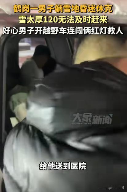 活该大哥发财!鹤岗一男子休克在雪地里,雪太厚120无法及时赶到,一好心大哥大喊:“上我的越野车,我车性能好!”之后他更是连闯2个红灯,将男子及时送到医院!大哥的一句话,让网友纷纷竖起大拇指! 这几天鹤岗下了好久的大雪,这是当地第一次遇到这样的情况,铲雪的工作人员根本就清不过来,导致道路上有很多积雪,特别影响交通,偏偏也就是在这个时候,有一名男子不知为何突然休克在了雪地里面。 必须要赶紧送去医院才行,但路上的积雪却成了救命的阻碍,男子被好心人发现后,即使赶紧拨打了120 救援电话,却始终等不来救援。 因为道路上的积雪导致车辆一直打滑,根本无法快速的赶到目的地,在场的所有人都特别着急,不想眼睁睁的看着一个生命从自己眼皮子底下溜走 ,大家都在努力的想办法,就在这个时候,一位开着越野车的好心大哥看到了这一幕。 大喊一声,上我的越野车,性能好,打破了刚才慌乱的氛围,大家齐心协力赶紧把男子抱上车,随后大哥深知现在这个时候时间就是生命,一路上他不顾危险尽可能的开最快的速度,连闯两个红灯将男子送到了医院。 事后却只是轻轻的留下一句话:救人一命,日行一善! 网友:怪不得我们这里还没下雪,原来是被大哥暖到了