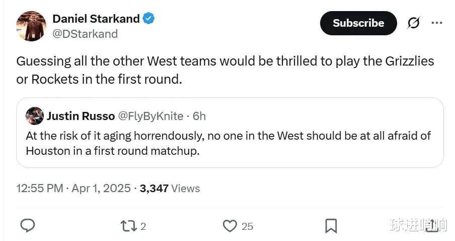 湖人队记甚至公开放话,任何一支西部球队在季后赛遇到火箭或者灰熊都会感到兴奋,丝毫不掩饰对于火箭队的轻视。