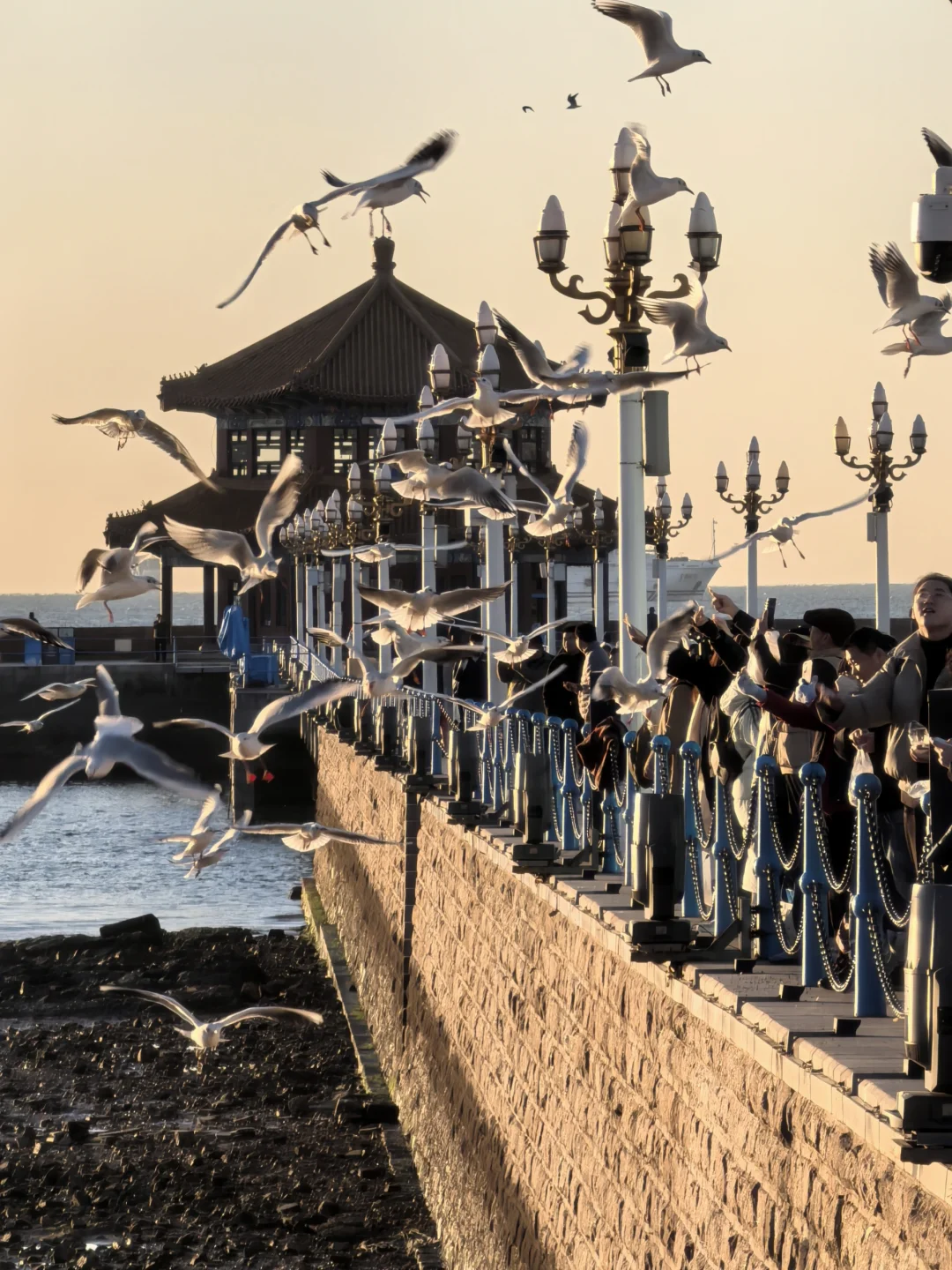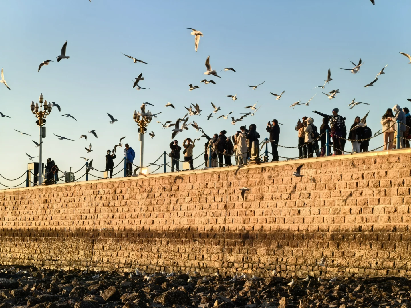 早七点海鸥准时从空中俯冲下来上班。