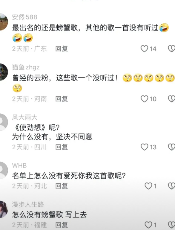 用户10xxx43 12 2024-12-10 16:49 说实话这些歌曲励志育人,比什么西海情歌要有意义思想广泛。西海情歌就是发情一类的歌,什么今天爱你明天爱他,跟小孩子过家家一样。 乌拉泊的风 回复 12-10 19:25 三观清奇,你真是个人才[点赞][点赞][点赞] 凌雲络 回复 乌拉泊的风 12-12 05:08 对云朵的抹黑,全是有人恶意造谣。怎么就成定论了? 反而,现在刀郎被人挖出来的猛料越来越多。底裤都快扒下来了。😓