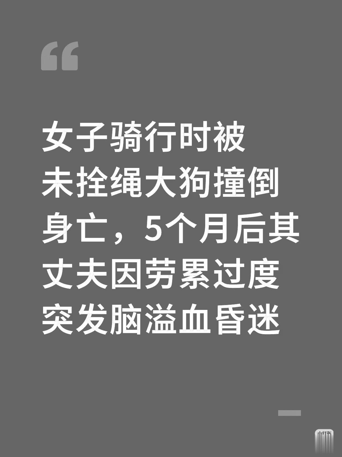 她骑自行车时被狗撞倒去世,她的丈夫承担起所有事情累垮了身体,法律程序却还在进行中。