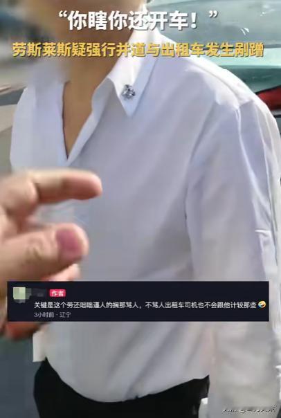 太气人了!辽宁,一劳斯莱斯强行并道与出租车发生剐蹭,车上下来一女子后,指着出租车司机大骂:“你瞎你还开车!”司机师傅冷静应对,一番话让对方无言以对!网友:龇牙咧嘴展现的淋漓尽致! 司机陈师傅(化名)作为一名出租车司机,平常就是靠着这份工作赚钱养家糊口,平常穿梭在大街小巷里面,接待各种各样的顾客,为了避免在路上遇上什么麻烦事情,陈师傅开车一直都十分小心翼翼。 可是一些事故的发生却总是让人始料未及,这天他开着出租车在堵路上正常行驶,本来一切都很寻常,谁知到,车后方突然冒出来了个劳斯莱斯,不知道是想要超车还是干什么,和陈师傅的出租车强行并道。 但是因道路狭窄,两辆车来了一场亲密接触,双方车子都有损坏,只能都停下来处理事情。 像道路上发生剐蹭这种事情比较常见,一般就是谁有问题,谁赔谁就完事了,大家和平协商,修个车就解决了。 谁知道陈师傅本想好好解决问题,但劳斯莱斯车主方来了一男一女,俩人下车后那架势就不是好好解决问题的样子,反而一副要干架的感觉。 因此双方交流并不愉快,可能陈师傅说了声自己瞎之类的话语,可算是让女子接着话茬了,上去就全开麦,不管三七二十一,就怼脸大声斥责:“你瞎你还开车!你瞎你就不具备开车条件,前面有个车你不挡,你不停”...... 接连重复好几次,一边说一遍也拿出手机拍摄,陈师傅被怼的有口难辩,硬是挤出来一句:“我在我自己道上走.....” 话还没说完,穿西装的男子开口就说:闭上你的臭嘴! 随后俩人气势汹汹的开怼,陈师傅实在忍无可忍,实在不想跟他们有过多的纠纷,大声表示:谁有毛病咱叫警察来,警察说我的错我给你修,警察说你的错你跟我修就完了! 对方这才败下阵来,后来这段事情被爆料,虽然视频里面并不是事情的全貌,这件剐蹭事件不知是谁的责任,但也不管是谁的责任,也不能以这种态度对他人,得饶人处且饶人,这就不是一个解决问题反而是一个激化问题的方式。 所以网友们纷纷表示:“由交警处理,有交法,嚷也没用,有理不在声高” “师傅说的没错,警察来谁的错谁承担” 对此您怎么看呢? 来源:看度新闻