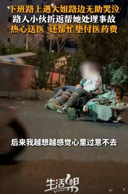 该帮就帮!山东,一小伙下班路上,偶遇一大姐骑车被撞倒后,坐在路边无助哭泣,小伙本不想多管闲事怕被讹,但还是折返帮她处理事故、送去医院就医,垫付医药费!结局特别温馨,随后小伙的一番话更是令人无比敬佩! 张先生(化名)是个干摩托车的热心肠小伙,这天他骑着摩托车在外办事,看到路边有一位大姐特别无助的坐在地上大哭,身旁是摔的稀烂的电动车,打眼一看,大姐应该是不小心摔倒受伤,起不来了。 张先生见状本想过去帮忙,但又想到很多帮忙反被讹的事情,就狠下心来继续前进,但是走到半路,他实在是过不去良心这一关,就想着反正自己是干摩托车的,对于各种交通事故的处理也比较在行,大姐一个人坐着哭也特别可怜。 最终折返过去上前帮忙,询问大姐这是怎么了,了解一下事故情况,大姐哭着表示,自己骑电动车骑的好好的,被一个人骑车创翻了,说着说着大姐委屈的哭着,受的伤也不轻,光电动车就摔的四仰八叉的。 张先生在了解完情况后,赶紧帮她处理事故,随后将大姐送去了医院治疗,在医院也掏出两千块钱医药费垫付,好在伤情也用不了那么多,最终花了八百多,同时也给大姐的丈夫打去电话。 很快其丈夫赶了过来,把钱转给了张先生,并表达诚挚的感谢,事后张先生接受采访表示,自己是个党员,热心肠一点,遇到这种事情,该帮帮,该办办,该垫垫,语气爽朗至极。 并且还呼吁大家不要害怕,如果有意外,肯定会有解决办法,网友:这个世界破破烂烂,但总有人缝缝补补!
