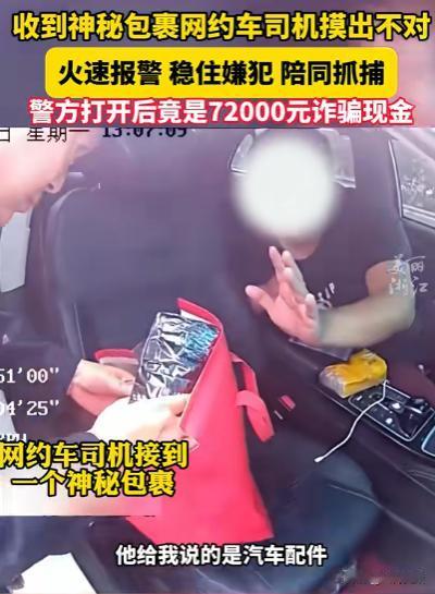 这个司机立大功!安徽,一网约车司机接到一顾客要求帮忙护送神秘包裹,顾客说里面放的是汽车配件,但司机摸了摸顿感不妙,立马打电话报警,稳住嫌犯配合警方将其抓捕,警方打开包裹后发现竟是72000元诈骗现金。 司机李先生(化名)是一名网约车司机,看开着私家车多赚点钱,接待的顾客也数不胜数,但是这一天却接到了一个奇怪的单子,单子的顾客打去电话表示要让李先生帮忙将一个包裹从当地的一个地方送到体育馆接货 起初,李先生并没有察觉什么异常,还以为就是普通的跑腿工作,所以就接下了这个单子,随口问了问里面放的是什么,结果对方却表示就是个汽车配件。 李先生听了也没有多想,开车送货的路上,却又接到了顾客的电话中途竟然又改了个位置,要到另一个地方去接货。 李先生就敏锐的察觉到了一丝不对劲,他顺手摸了摸货物,发现货物四四方方的,一点都不像是一个汽车配件,反而像是金钱。 而一般人怎么会用这种方式进行交易呢,于是他越想越不对劲,第一直觉告诉他,这件事情不简单,很有可能是个犯罪集团。 有了这个想法后,李先生就赶紧拨打了报警电话,给警察交代了事情的原委,并协助警察稳住了嫌疑犯,陪同警察一起将其抓获,打开什么包裹一看,里面竟是犯罪嫌疑人诈骗得来了72000元现金,司机算是救下了一个家庭,让一个坏人绳之以法。