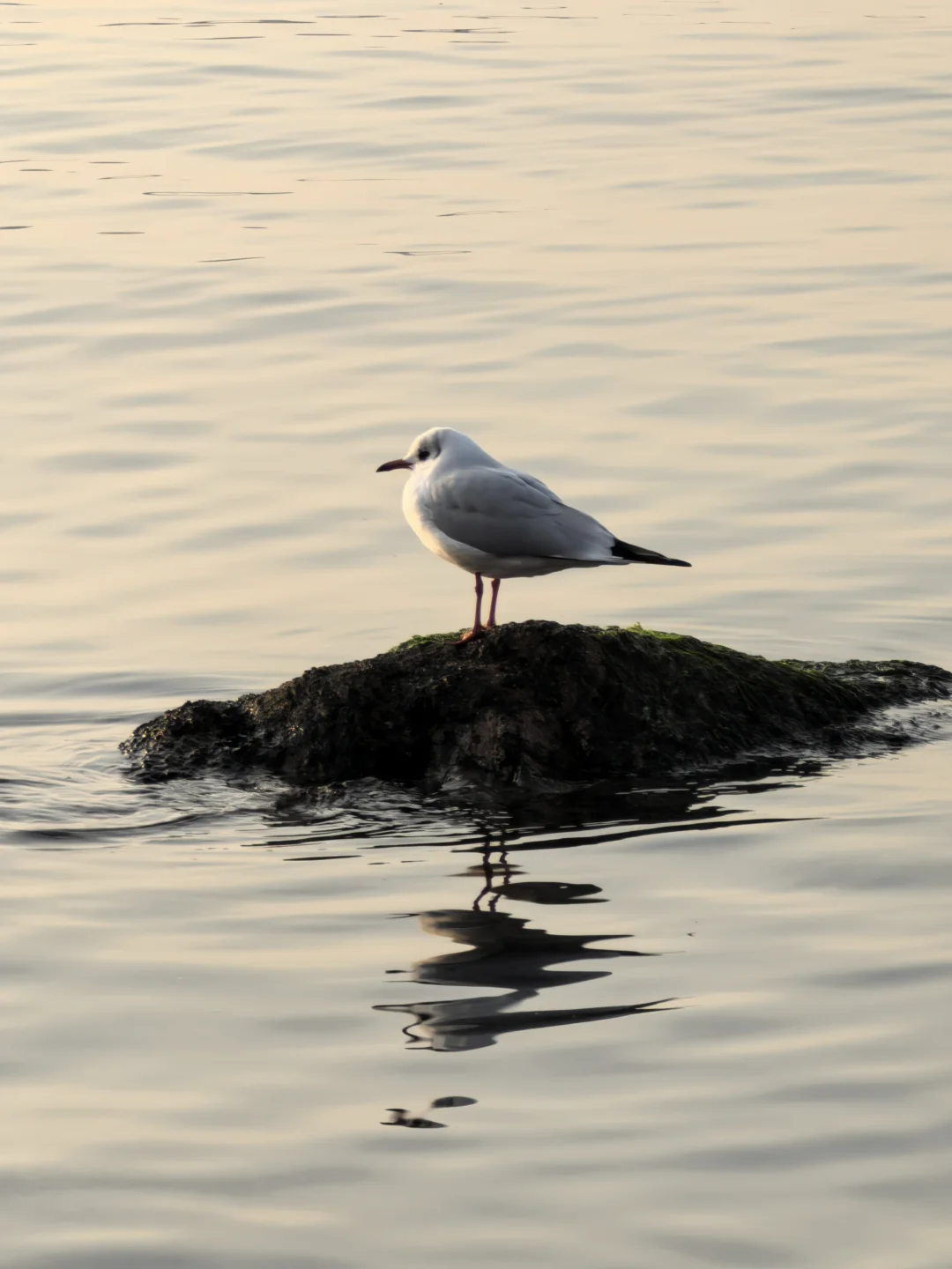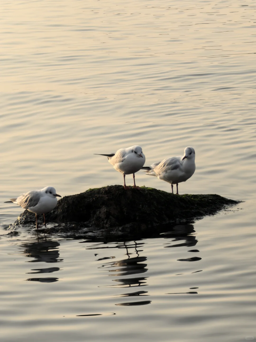 气温个位数,穿羽绒服正好。海边无风浪仅有点薄雾。