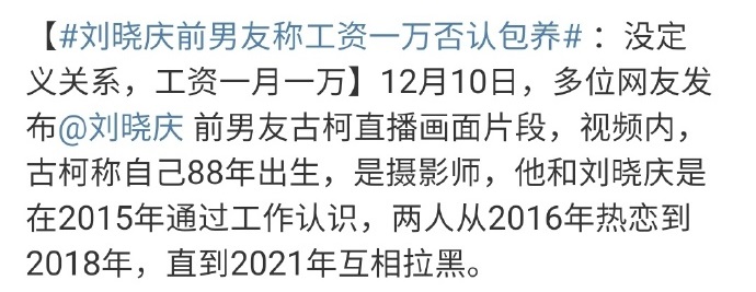 刘晓庆前男友古柯直播爆料,自己和刘晓庆从2016年开始热恋,但刘晓庆2013年就和第四任丈夫结婚了。所以,古柯是刘晓庆的前小三,不是前男友!
