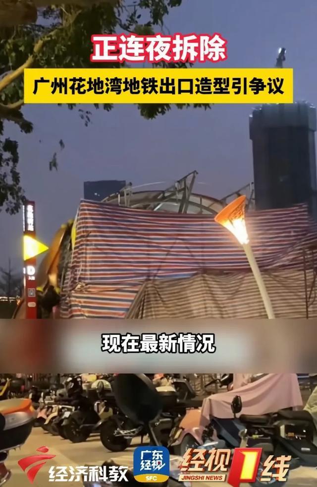 由于投诉的人太多,该地铁出站口已经停止施工,并且连夜用油布进行了遮挡,顶部像棺材的部分也已经被拆除。