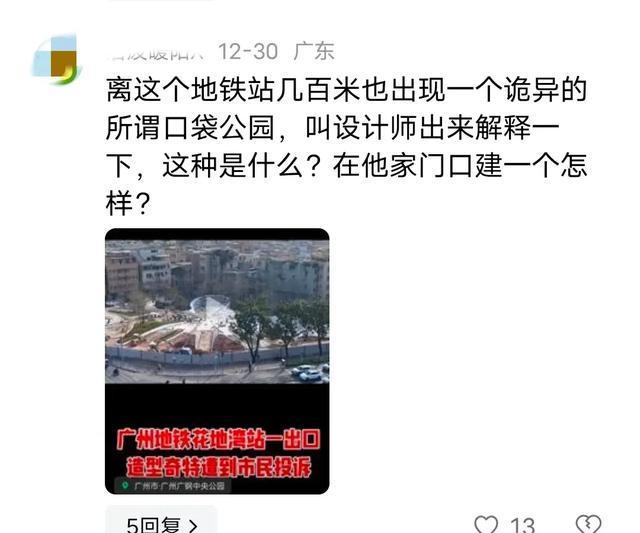 此外,还有网友发现,就在这个地铁站口几百米处的口袋公园,设计风格也很诡异。