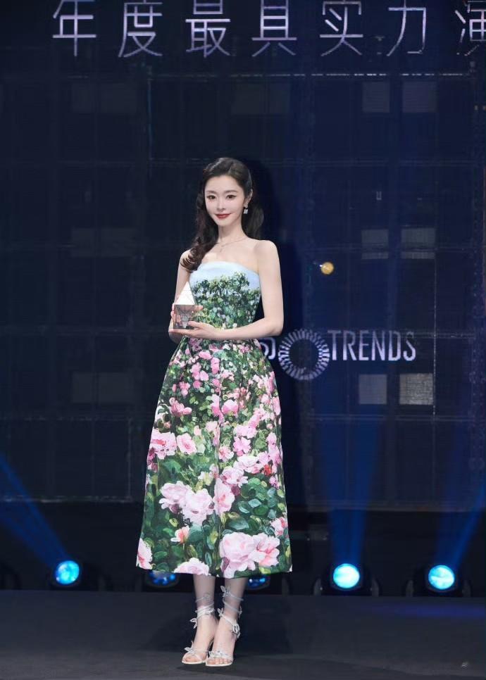 宋轶手捧奖杯的这一刻,香槟色礼服在灯光下闪得像把星光穿在了身上,是实至名归的耀眼