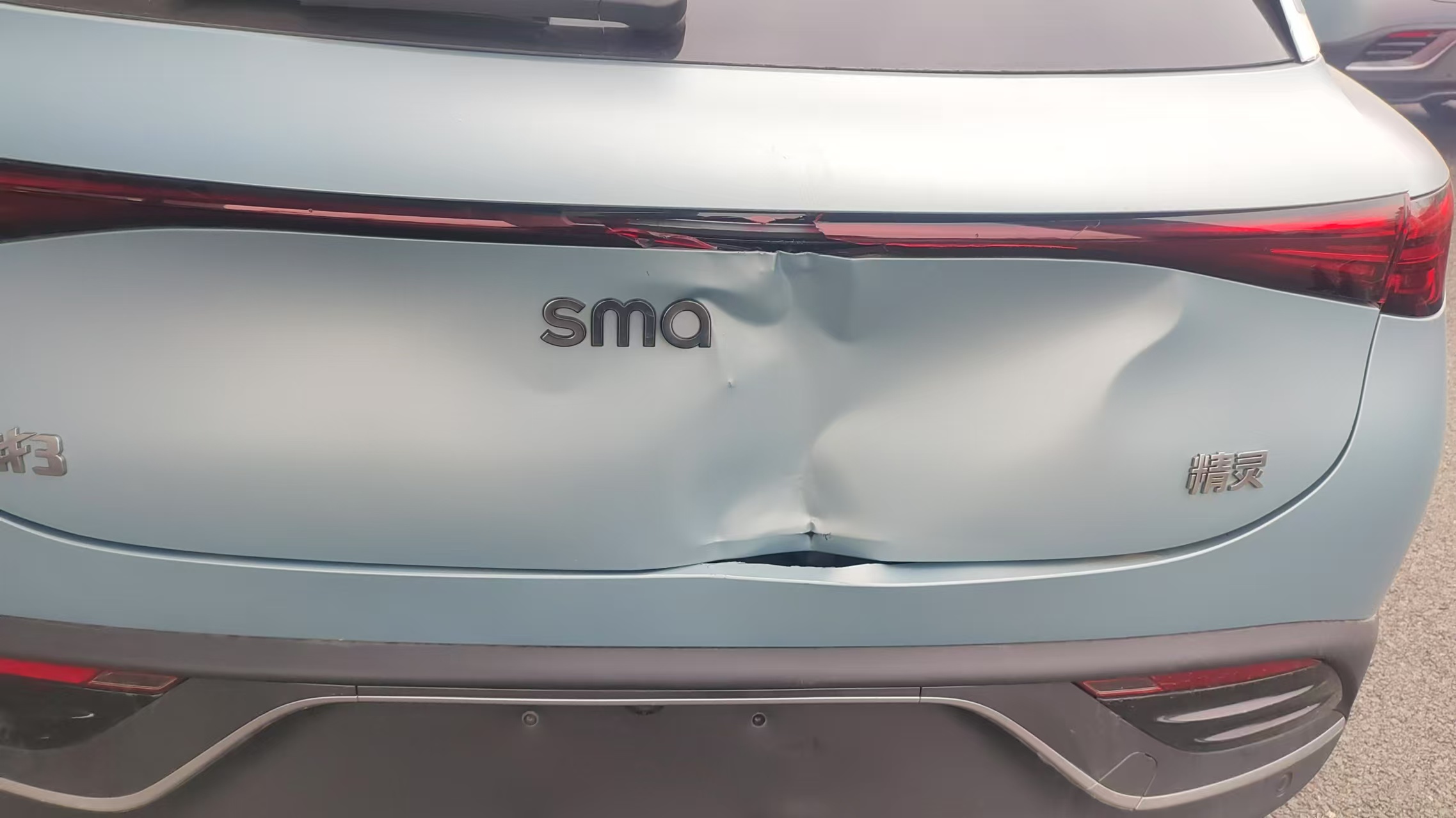 这老哥是合作物流公司的司机,今天不小心把人家停车场的Smart商品车碰了,店里要求全款买断。