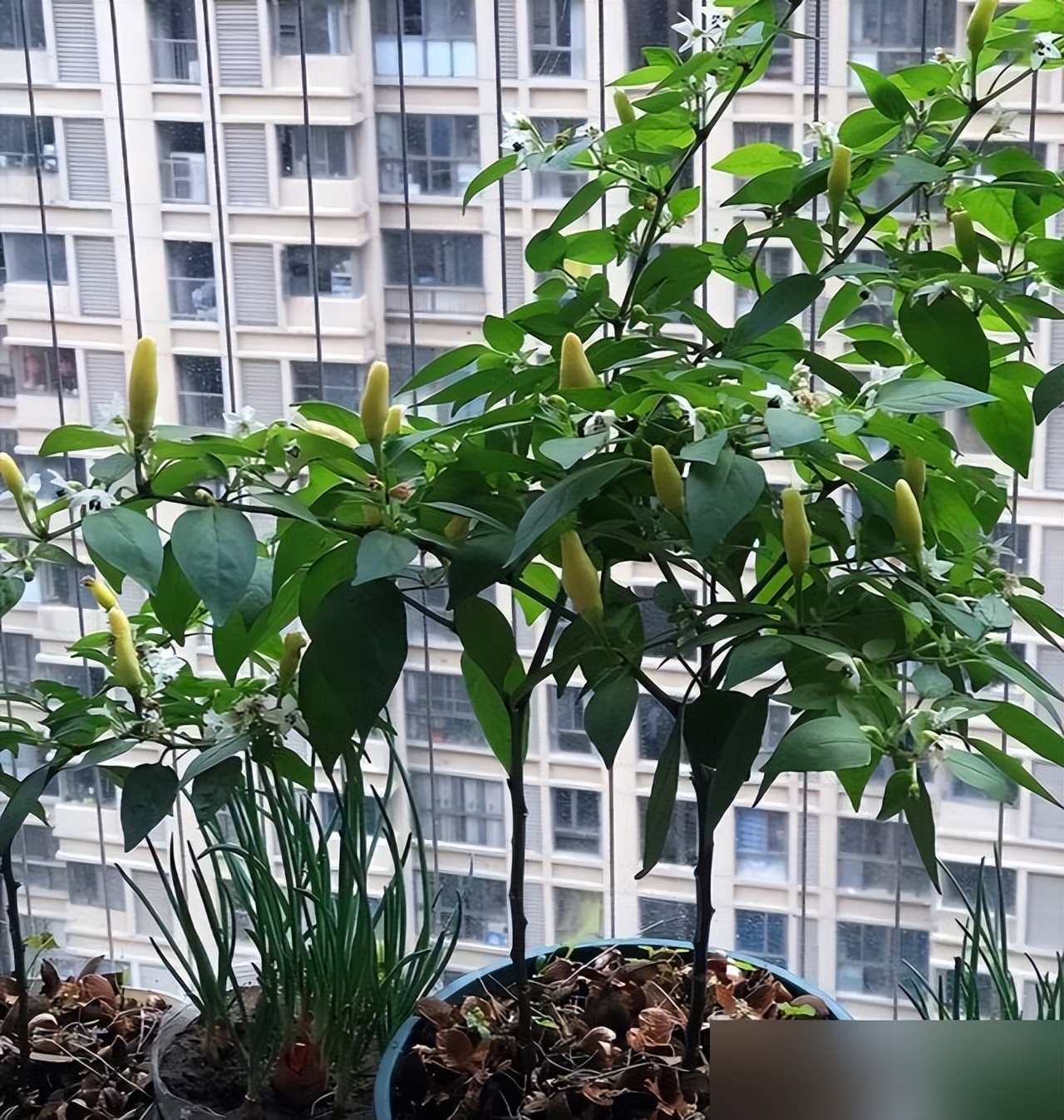 后来胆子肥了,把淘汰的蓝牙音箱外壳钻几个孔填土,塞进一棵朝天椒。