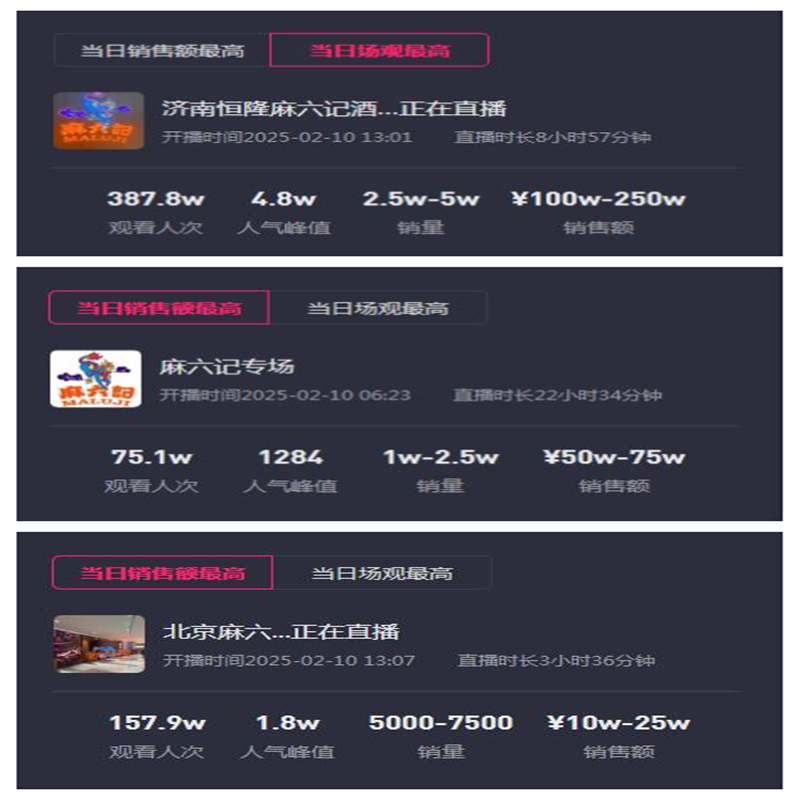 其实,不少网友认为张兰没必要非得转战海外。毕竟,在她本人无法出镜的情况下,麻六记全国各地的分店已经开启了“边做餐饮边带货”的模式,销售额也相当可观。比如济南的线上直播,单日销量就突破了100万,其他门店的销量也在10万到50万之间。如此累加,每日带货直播入账金额依然不菲。