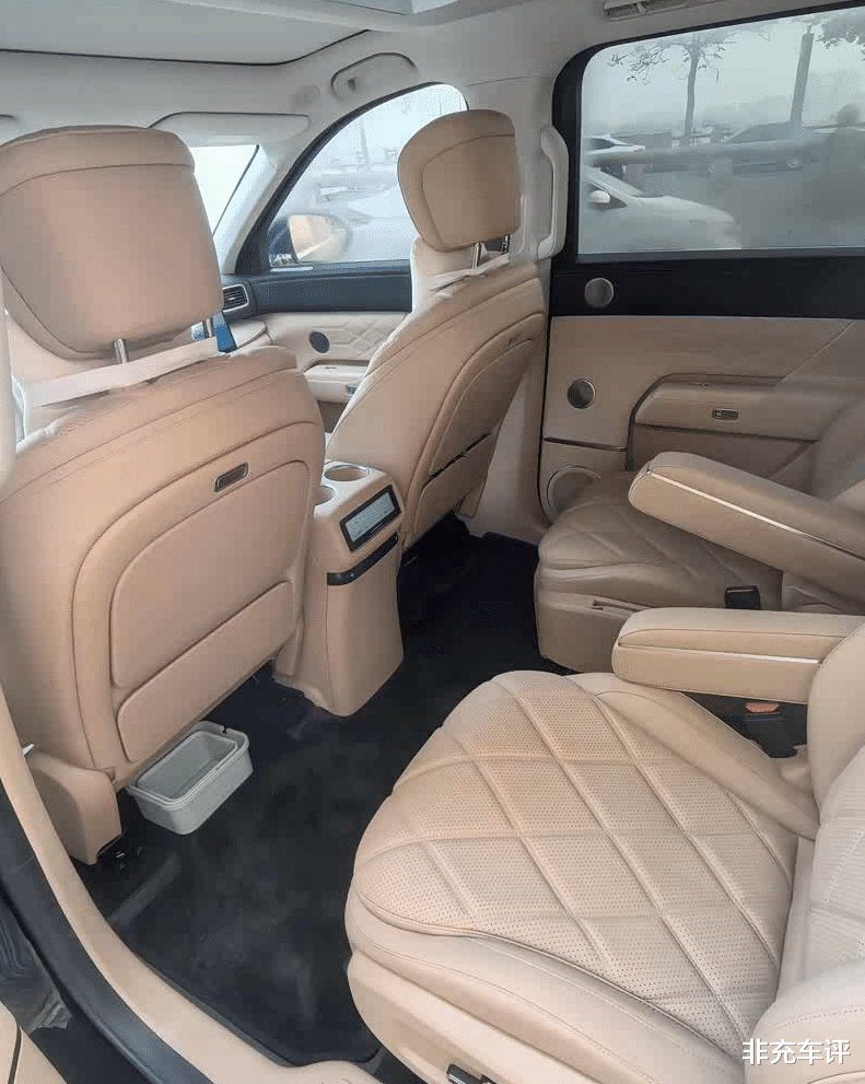后排还有17.3英寸的吸顶屏,再加上车载冰箱、香薰、按摩座椅。
