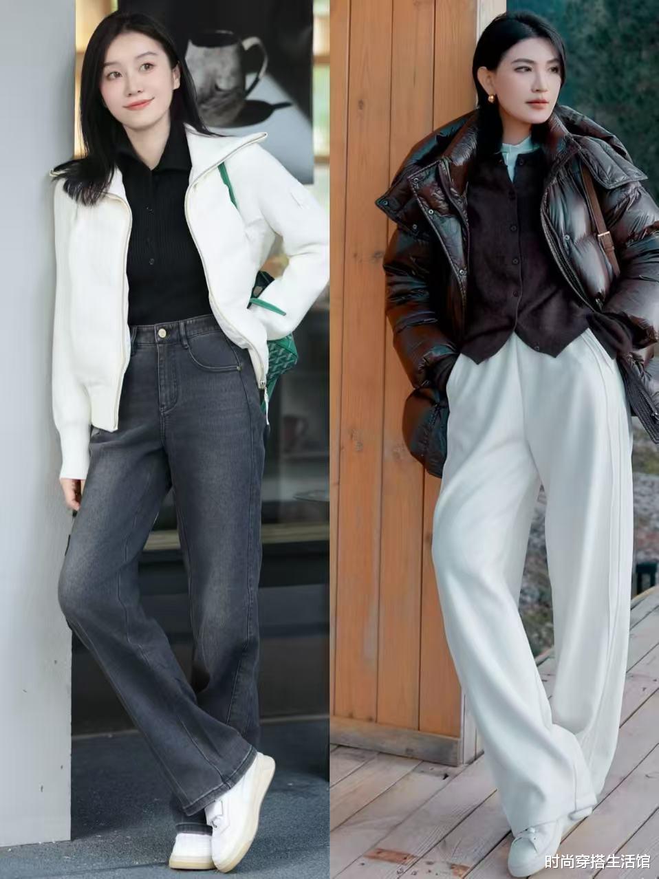 阔腿裤+小白鞋