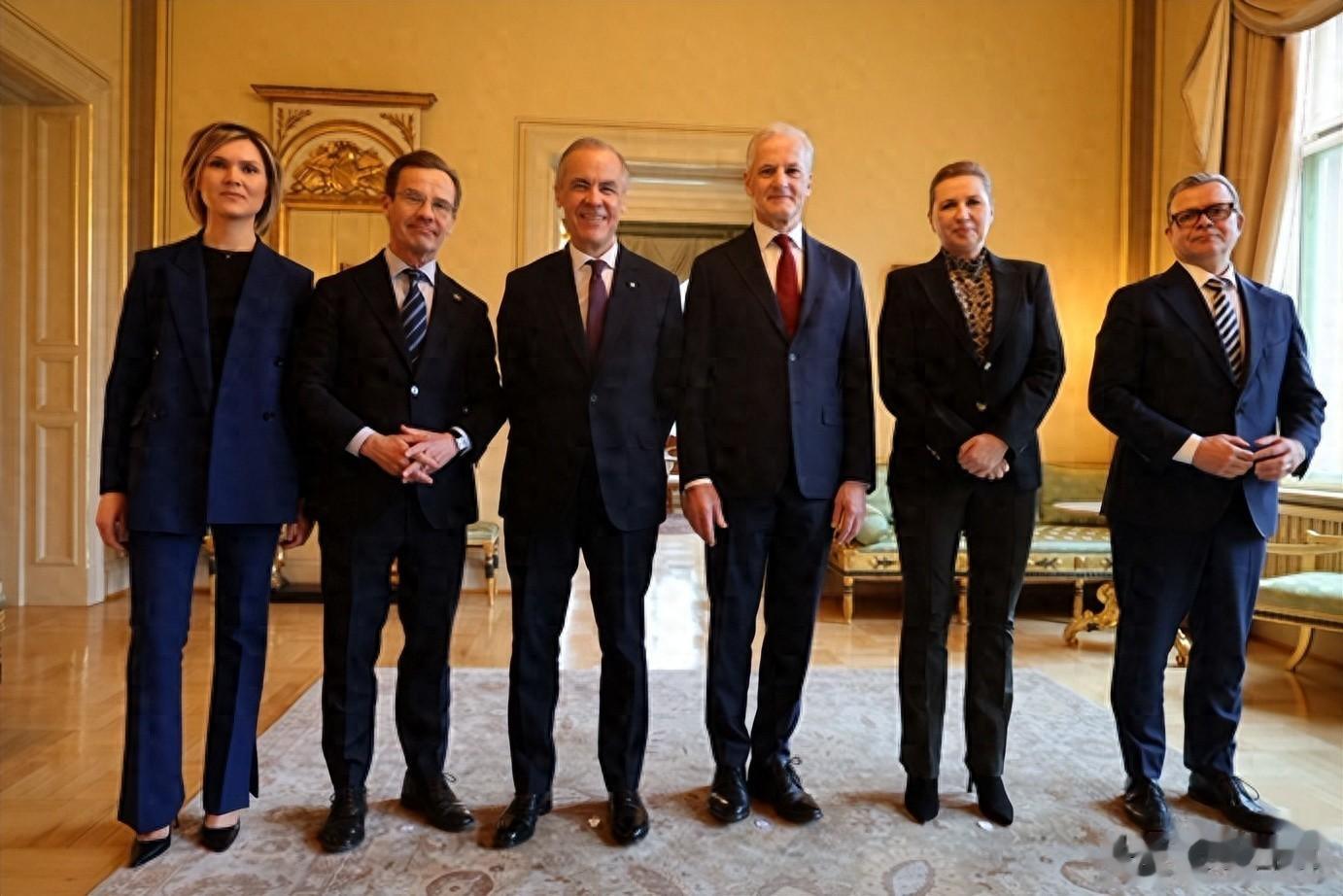 3月15日这天,加拿大总理卡尼伫立于奥斯陆的新闻发布台前,身侧并肩而立的是挪威、瑞典、丹麦、芬兰、冰岛五国领导人。
