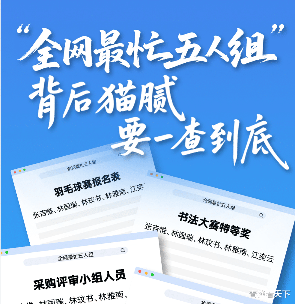 真是不查不知道,一查吓一跳。被指为“全网最忙五人组”不仅出现在湖北竹溪县住建局招标评审小组,还出现在辽宁抚顺市“新抚区执法局行政处罚简易程序公示”上,以及成为书法大赛获奖者,和杭州师范大学慈善捐助受益对象,而今,随着媒体进一步深挖深查,“全网最忙五人组”在各行各业的“走穴”,已经到了用令人惊诧都难以形容的地步。