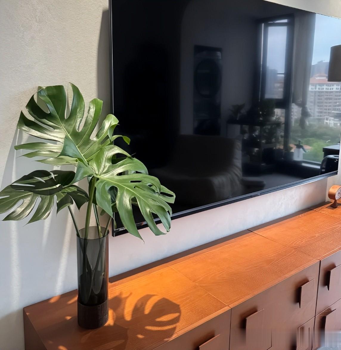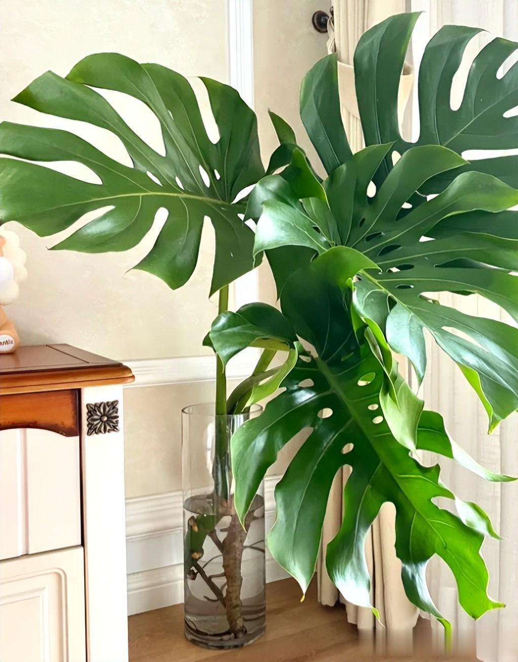 水培植物真的很好养护,直接往花瓶里面一扔,倒点清水,龟背竹就能养好了。