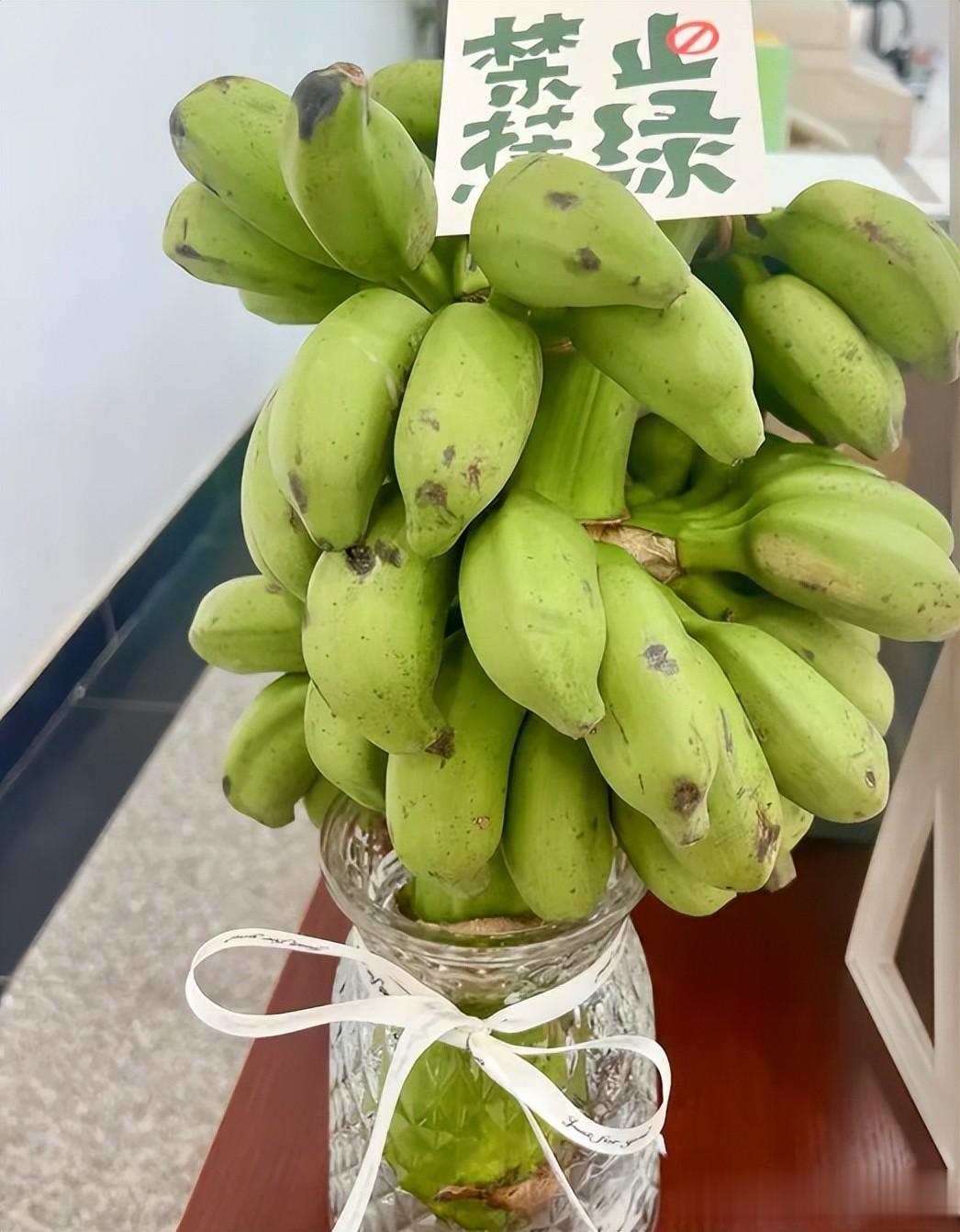 养了半个月时间左右,青绿色的香蕉慢慢开始变成黄色的,香蕉只要是变成黄色,就可以正常吃了。