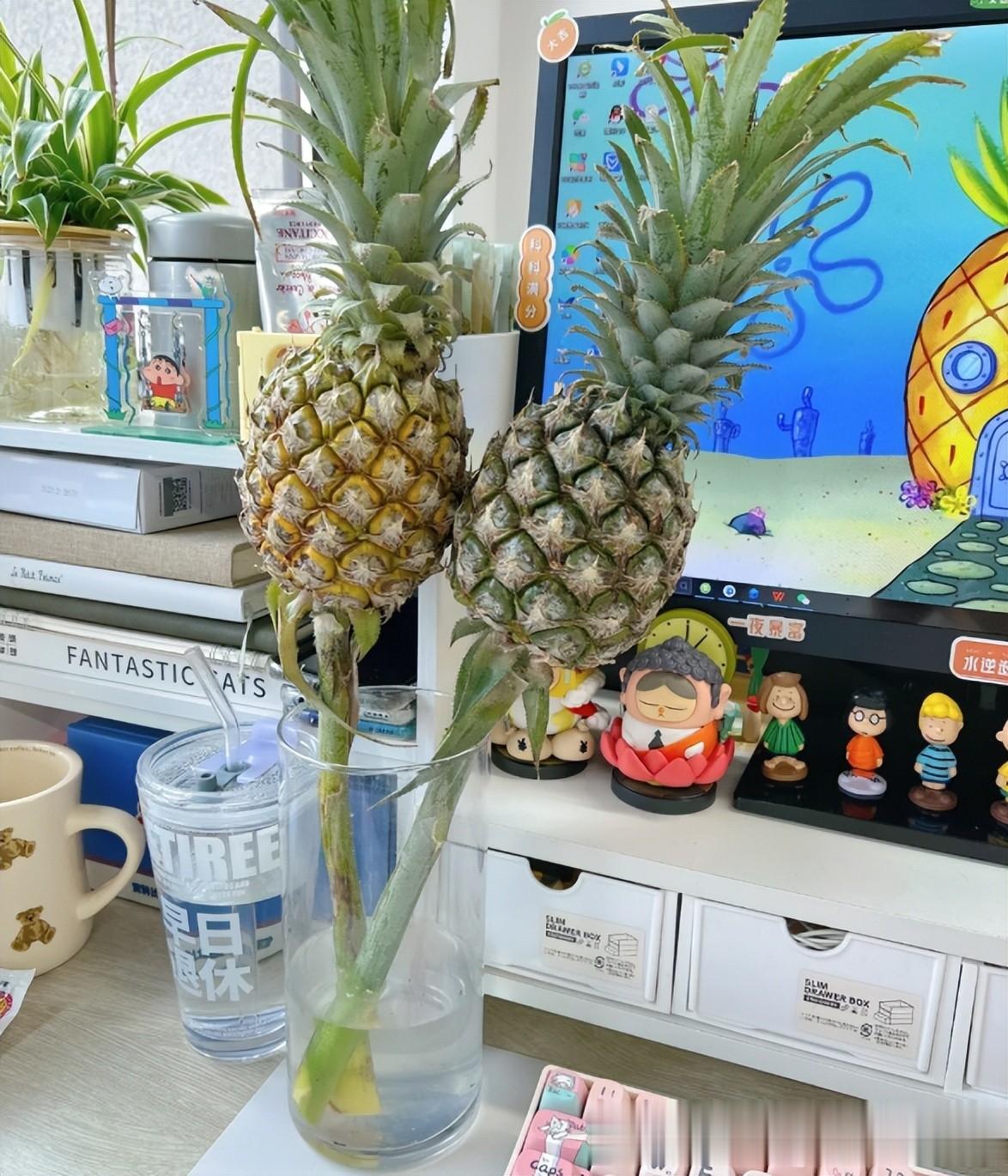 它是不能水培出新菠萝的,但是放在家里既好看,又可以吃,最关键的是味道也很好闻。