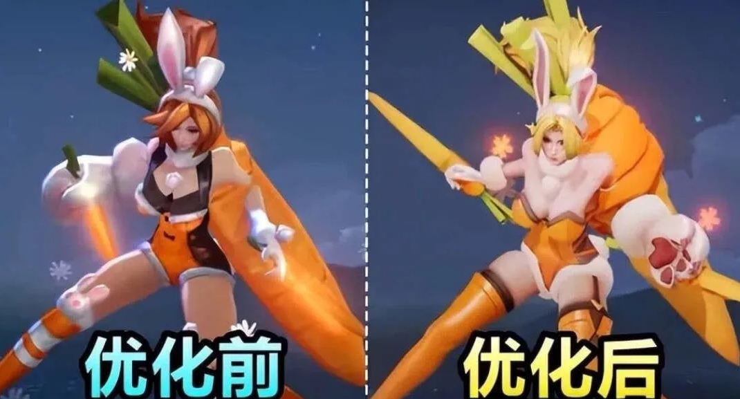 再就是花木兰这个英雄也有好消息,根据网友爆料的消息,花木兰这个英雄接下来有一款皮肤会迎来优化,这款皮肤就是她的勇者皮肤兔女郎,如下图所示,这款皮肤优化之后颜色变得更加爆满,服装的精细度也提高了,总体来说还是变得好看了很多。