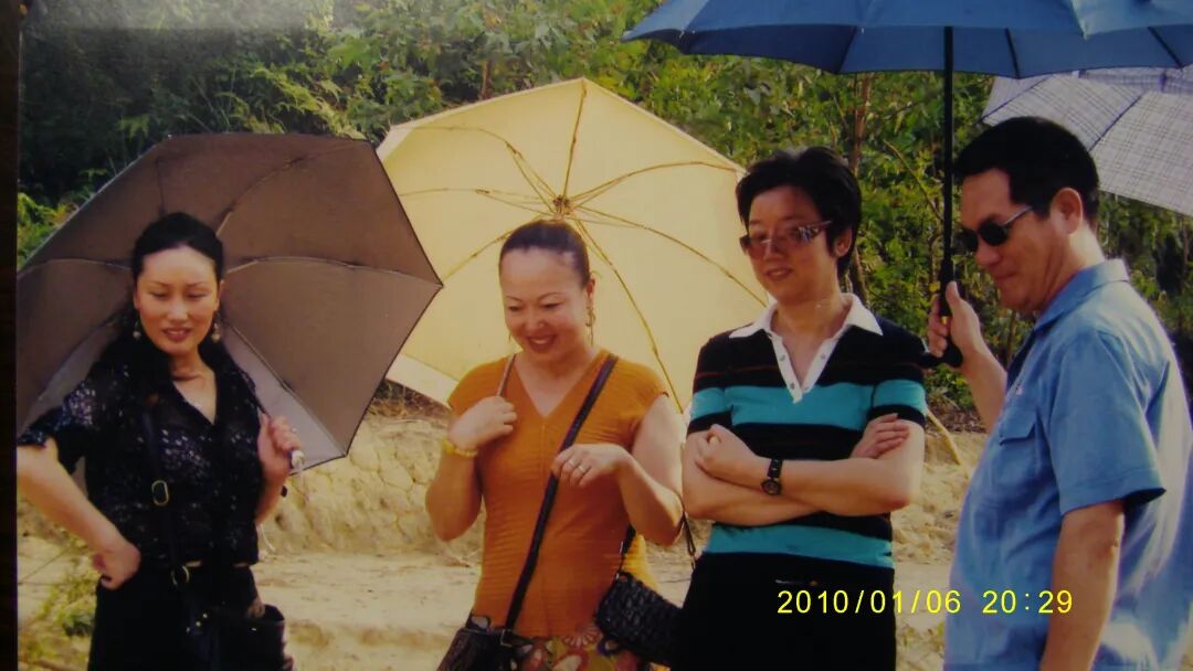 2007年我在广州清远恒大金碧天下负责土方施工,不知谁告诉许太这里有散养的土鸡和土鸡蛋。许太带着几个闺蜜过来玩顺便带点土鸡和鸡蛋回去,我正在工地,下面人打电话过来说许太到了,我急忙去接待。工地很大,带许太她们坐车转了转,虽然是工地,但清远的环境很好,绿水青山。我们一起上山去抓了几只鸡,下面人漫山遍野的捡了几筐鸡蛋。晚上就在清远吃的饭。那天很热,大家开始喝啤酒,然后是白酒,许太那天的心情特别好,几个闺蜜的酒量也很好,饭桌上气氛很热烈,都喝多了!许太走路都有点不稳了。她们是坐商务车来的,我把许太扶到车上,那种可以放平的座椅,许太就躺下了。我帮着许太系安全带,由于我也喝多了,加上天已经黑了,我怎么也找不见安全带的插口,只能俯下身去在许太身边摸索。这时,站在我身后的许太的闺蜜拍了我一巴掌说,李总,不要乱摸!我急忙说,我没有乱摸,我是插不进去!我靠!你还想插进去?我急忙大声说:安全带!是安全带!!惹得大家红哄堂大笑。这时保镖过来说,李总我来吧!(下图即是当天的照片,我在给许太撑伞。照片上的时间为后来翻拍的时间。)