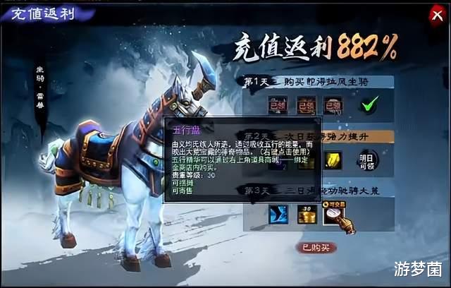 还有个位数的首充礼包,闭眼冲不亏,第三天送的两个五行盘直接回本,运气好开出福晋轻功,市场价500起步,欧皇一波就能逆袭!