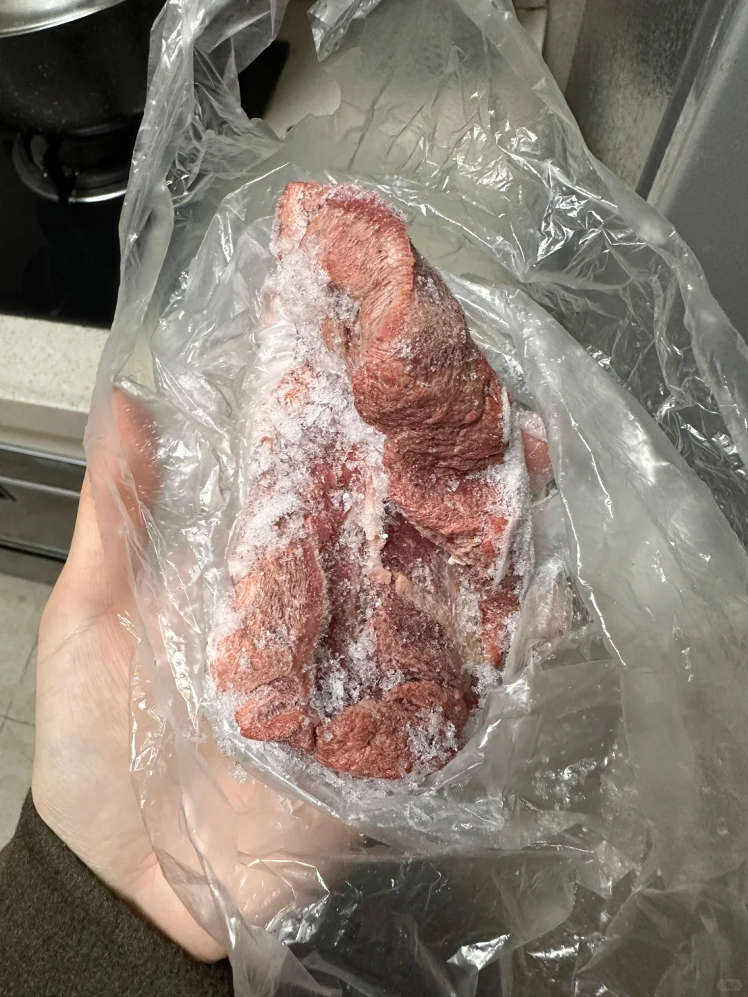 --一个星期前买了牛肉丢冷冻室里,突然想起打开一看,都风干了。