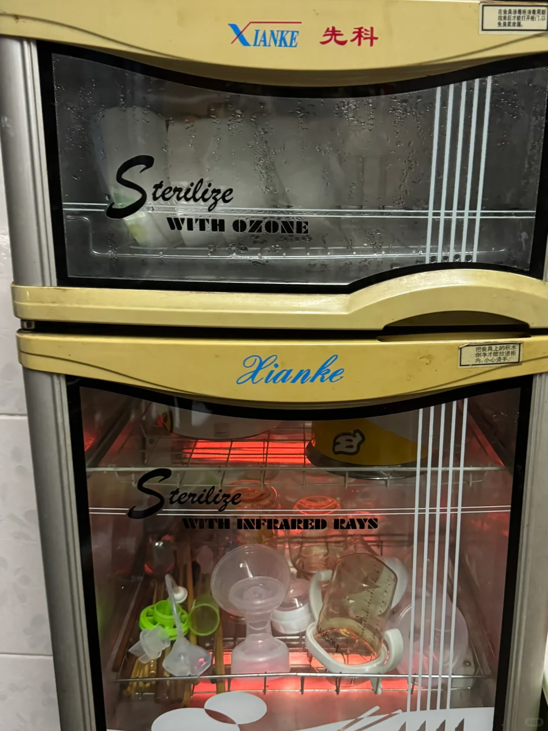 --学着网上说的用碗筷消毒柜代替奶瓶消毒柜,结果奶瓶吸奶器全军覆没。
