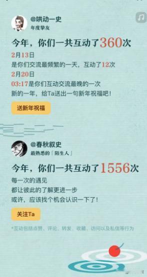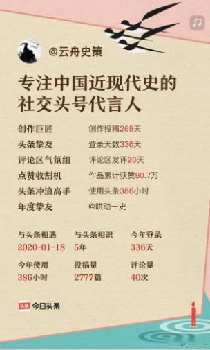 一年过完了,总有些东西是写给自己的!没想到头条如此的贴心,直接给我们整了个清晰可见的年度报表,里面包含了我在头条成长道路上,一整年的酸甜苦辣! 清晰到我在哪一天是在头条待的时间最长的,如同时光机一样,将我带回那一天,回想自己究竟在吸取怎样的信息和知识。 精准到我在哪一天晚睡,情不自禁的搜索@Talk科普,解答疑虑寻找答案一直到半夜...... 因为为了能够创造出优质深度的内容,平常总是喜欢观察头条上优质的创作者所输出的作品,乐此不疲的学习他们的优点,和更多的优质创作者互动交友,希望自己也能跟的上步伐,走在创作的前沿。 在这个过程中,不知不觉也就积累了很多的朋友,但要说都有谁,一时间回答不上来,没想到头条却贴心的都统计出来,还排了个名字——好友top5榜单,以及好友之间互动的次数,一直以来自己从来没有关注个互动消息,头条再次给我打开了新世界的大门,让我在创作中不孤单。 并且给我账号的形象总结了一个特别贴合的关键词——专注中国近现代史的社交头号代言人,很荣幸能够有这样的称呼,我会带着它一直和有意思的头条走下去,用我的洞察力和感知力,写出极具共鸣的文章,讲述动人的故事。 如果说用什么来表达我的情感,那一定是文字,它是无声且震耳欲聋的,能够一直给予我回响的,这一年我收获了很多,下一年继续努力,加油!