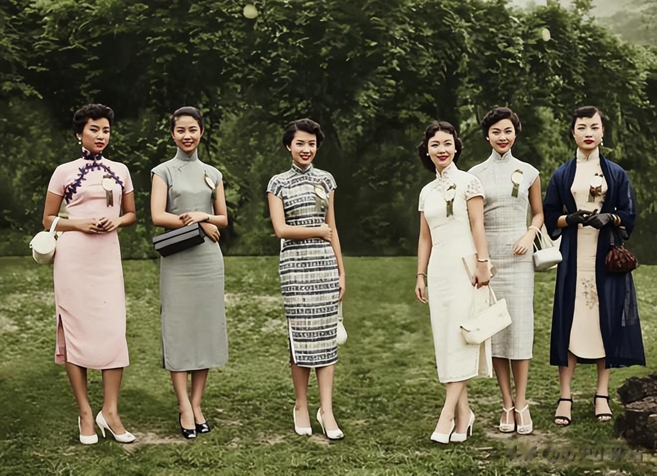 这张上世纪30年代的老照片里,六位女性身着彼时都市流行的旗袍,把那个年代的优雅衬得恰到好处,旗袍长度及踝,剪裁贴合身型,既保留了传统立领、盘扣的温婉韵味,最右侧的女士还搭了件薄款外褂,添了几分层次柔和。