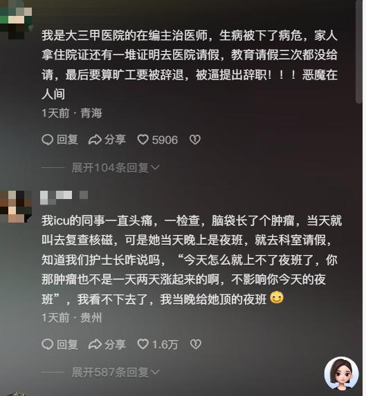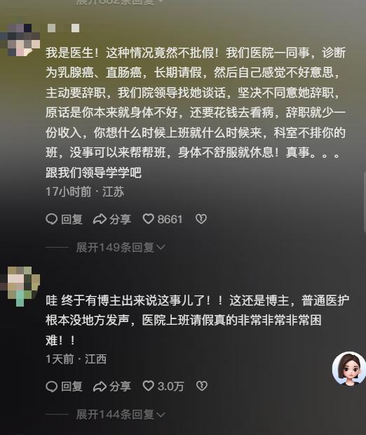 很多人都看不下去了,“护士自己都病倒了还请不了假,这规定到底是为谁定的?” 不少医护人员也纷纷留言,说这种情况太常见了,自己也遇到过。
