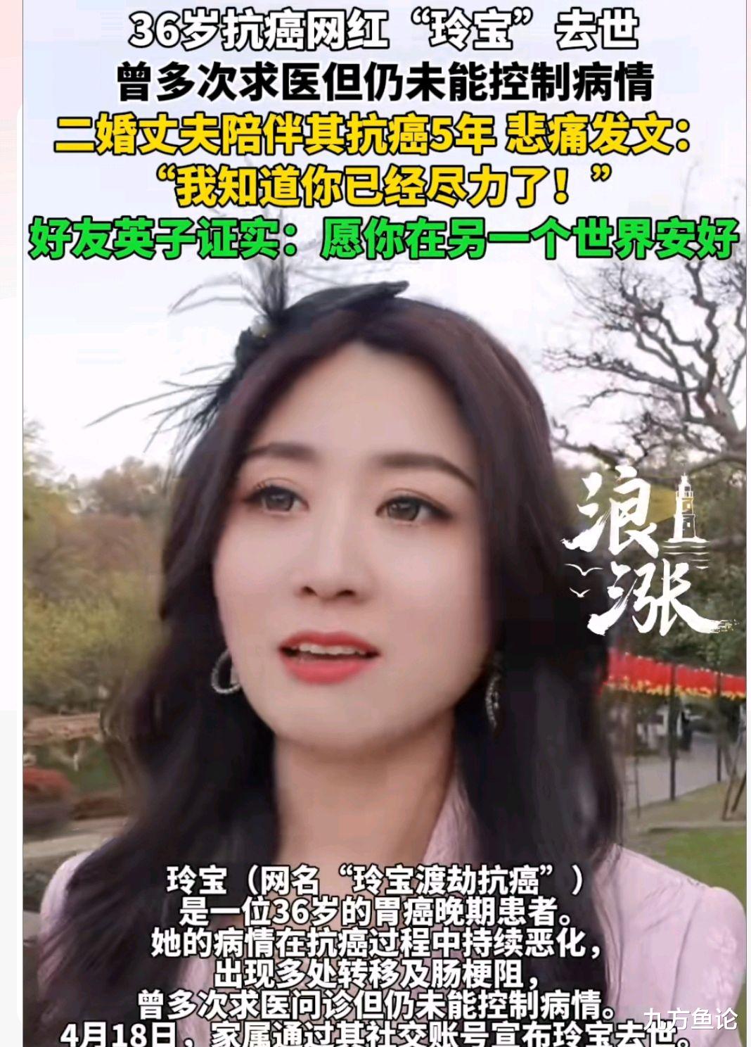 4月18日,36岁抗癌网红“玲宝”不敌病魔,不幸去世。玲宝是家人对其爱称,年纪轻轻就离开,抛下深爱她的丈夫和两个儿子,她也十分无奈。