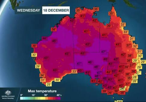 根据澳大利亚气象局(BOM)的初步数据统计,昨天(17日)是澳大利亚自有气象记录以来的最热的一天。全国平均气温为40.9℃,打破了2013年1月创下的40.3℃的纪录,但根据预测,这一纪录不可能持续很长时间。随着炙热的空气在全国范围内移动,预计未来几天气温将继续升高。