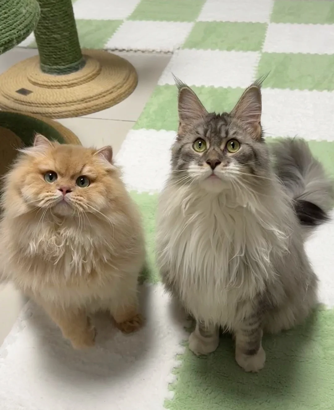 定格猫咪的双拼时刻 小猫咪也有好朋友 猫猫同时看镜头挑战 缅因猫 紫金渐层 谁是男孩子[投票]