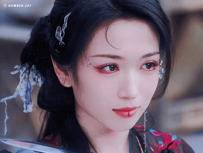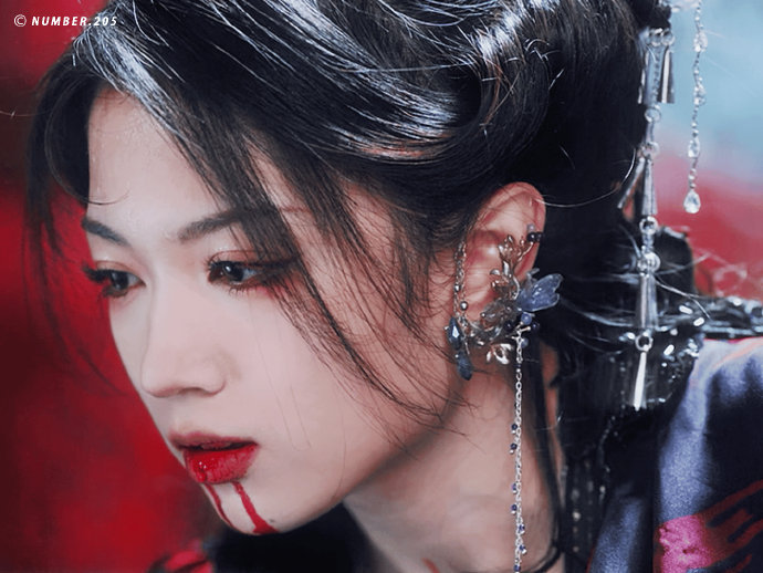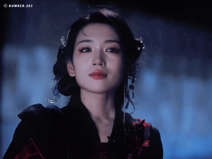 茯苓这个妖女妆设最点睛之笔的就是唇上那一点红,看起来魅惑又危险