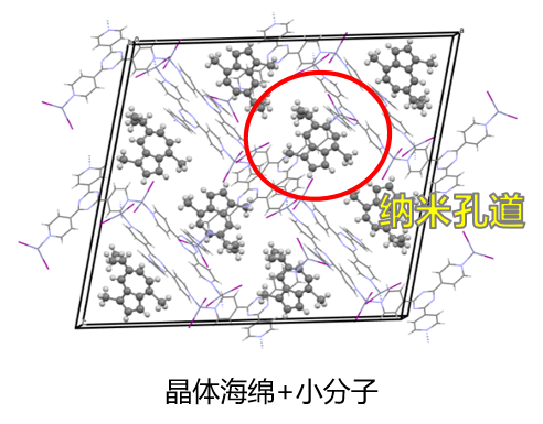 晶体海绵法是将提前结晶好的、具有均匀纳米孔道的多孔材料(晶体海绵)放入目标小分子溶液中,待油状目标小分子扩散、有序 “入住” 到海绵的孔道里,在孔道的限域作用下完成规则排列,就可以将载有样品的晶体直接进行X射线衍射分析,再扣除掉已知的海绵骨架结构,就能精准还原出目标分子的三维结构信息。[1]