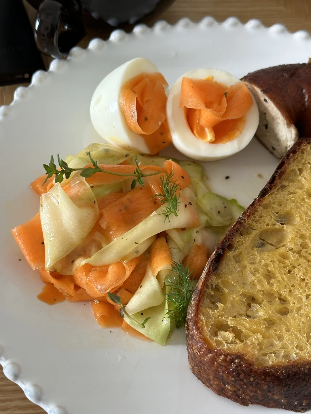 今天的早餐长这样子 不开火料理 营养健康早餐 早餐长这样 早餐 美食小宇宙 西葫芦+🥕的清爽沙拉 粗心忘记放密封袋的、险些被风干的黑麦核桃黑芝麻碱水蒸着吃太完美! 烤过火的南瓜欧切了直接吃还不错! 最近都是迷迷糊糊的😴 吃完满血复活