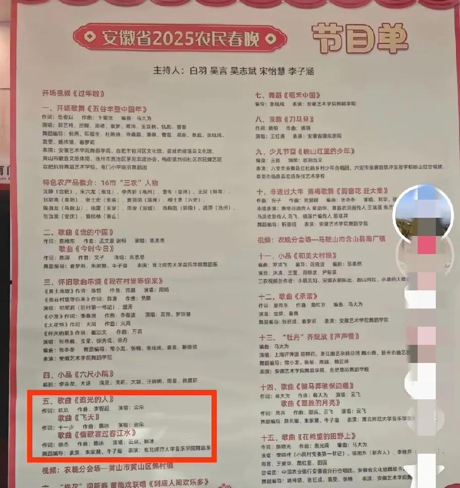 云朵真是炙手可热的歌手,虽然因为几首成名曲版权问题无法在2025年继续再唱,一点也不影响她的歌手之路! 这不安徽卫视邀请云朵参加录制春晚节目,云朵唱三首歌《情歌赛过春江水》《飞天》《追光的人》,看样子《我的楼兰》《爱是你我》《西海情歌》《云朵》这四首歌云朵真的没有版权可以唱了,其他几首歌唱的再好,感觉没有这几首歌有韵味,看样子云朵和师父刀郎之间师徒关系真的无法缓解了,否则不会变成今天这个境地! 至于云朵唱的这几首不知道有没版权问题,毕竟都是有原唱的!