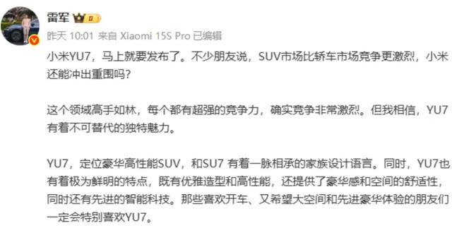 随着小米YU7的即将上市,消费者的关注点也集中在了车辆的实际使用体验与性价比上。虽然在性能上有很大期待,但很多人更想知道小米在售后服务、充电设施等生态的布局是否能够跟上。未来两个月的时间,将是市场对小米YU7各方面进行考量和评估的重要窗口。