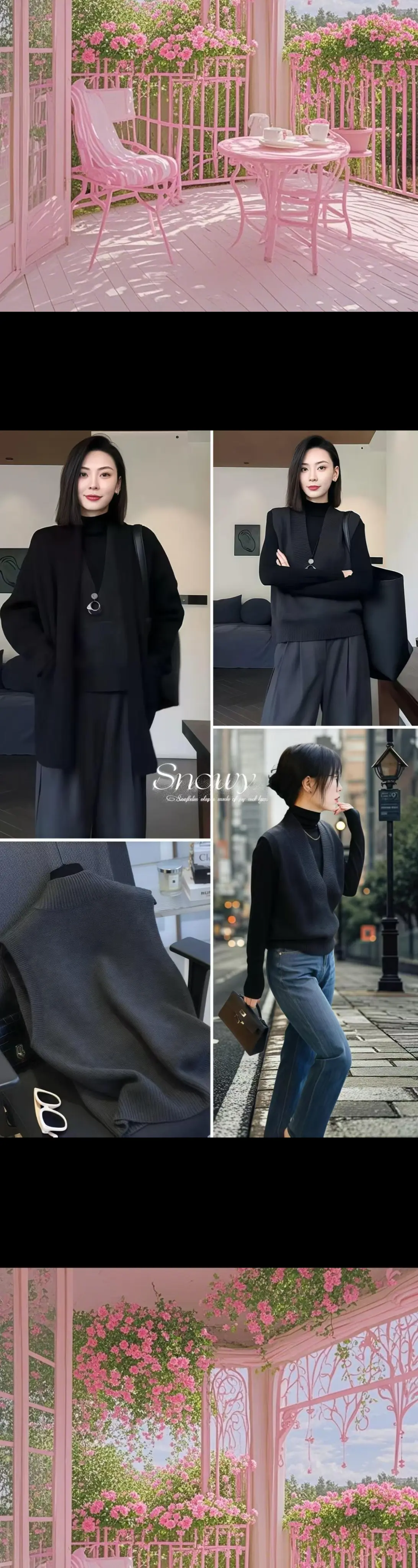 秋冬必备新款大V领针织马甲背心!大V领设计,修饰脸型显脸小,还能延长颈...