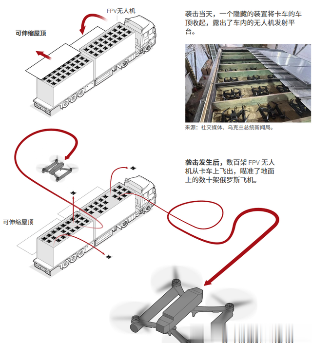 这一次,货车成了“空军基地”,每辆车都像一个隐形发射平台,掀开车顶即完成出击。据称,这些卡车由一名乌克兰裔男子在俄罗斯境内购入并组建“运输公司”进行掩护,司机大多并不知情。